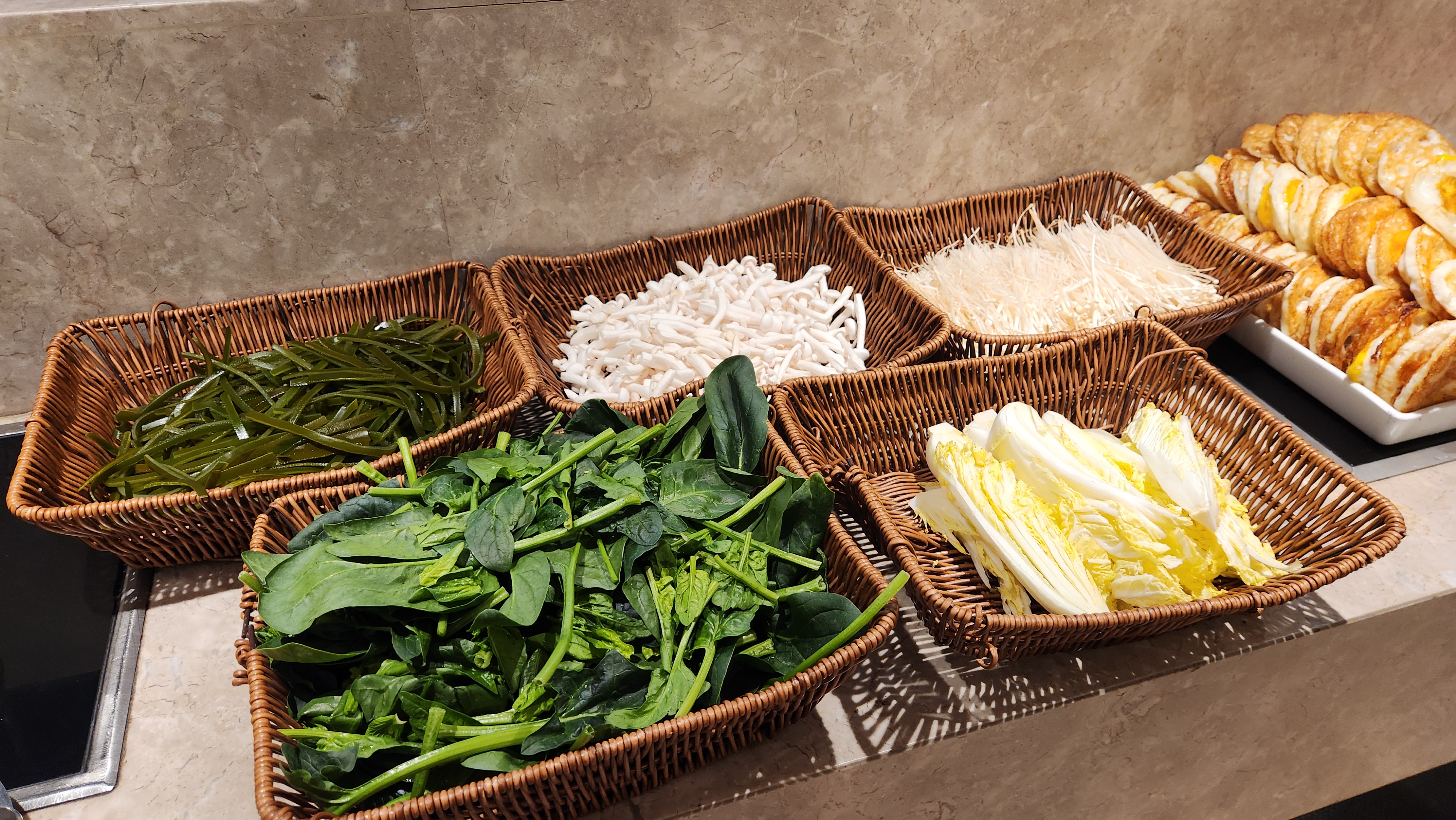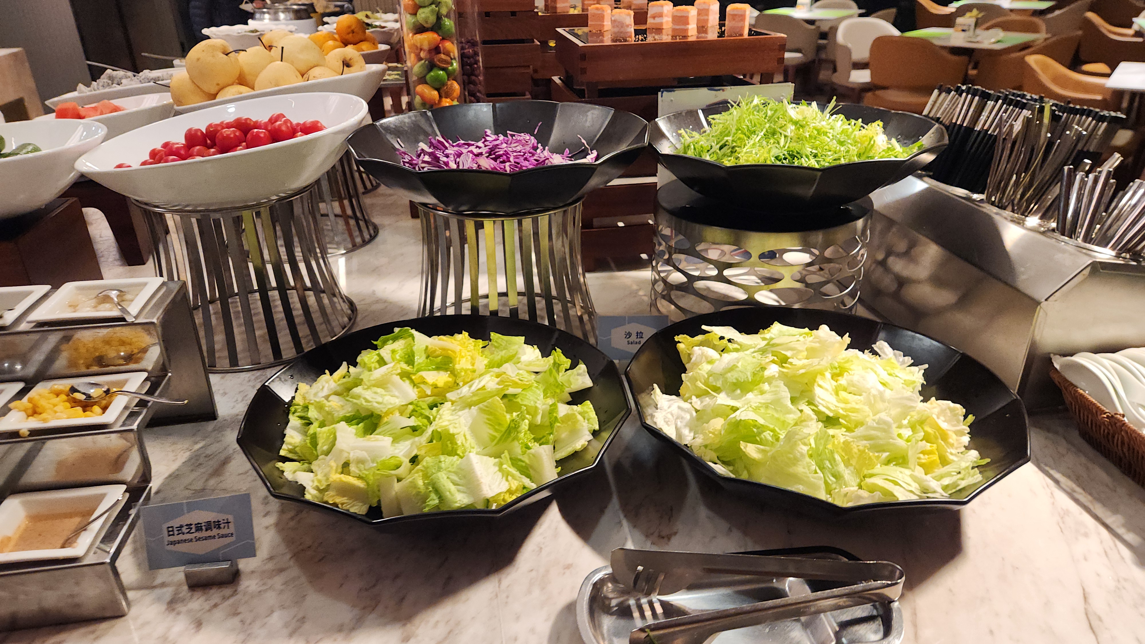 샐러드용 채소들도 있고 각종 밑반찬들과 밥이 있어서 부담 없이 먹기 좋았습니다.