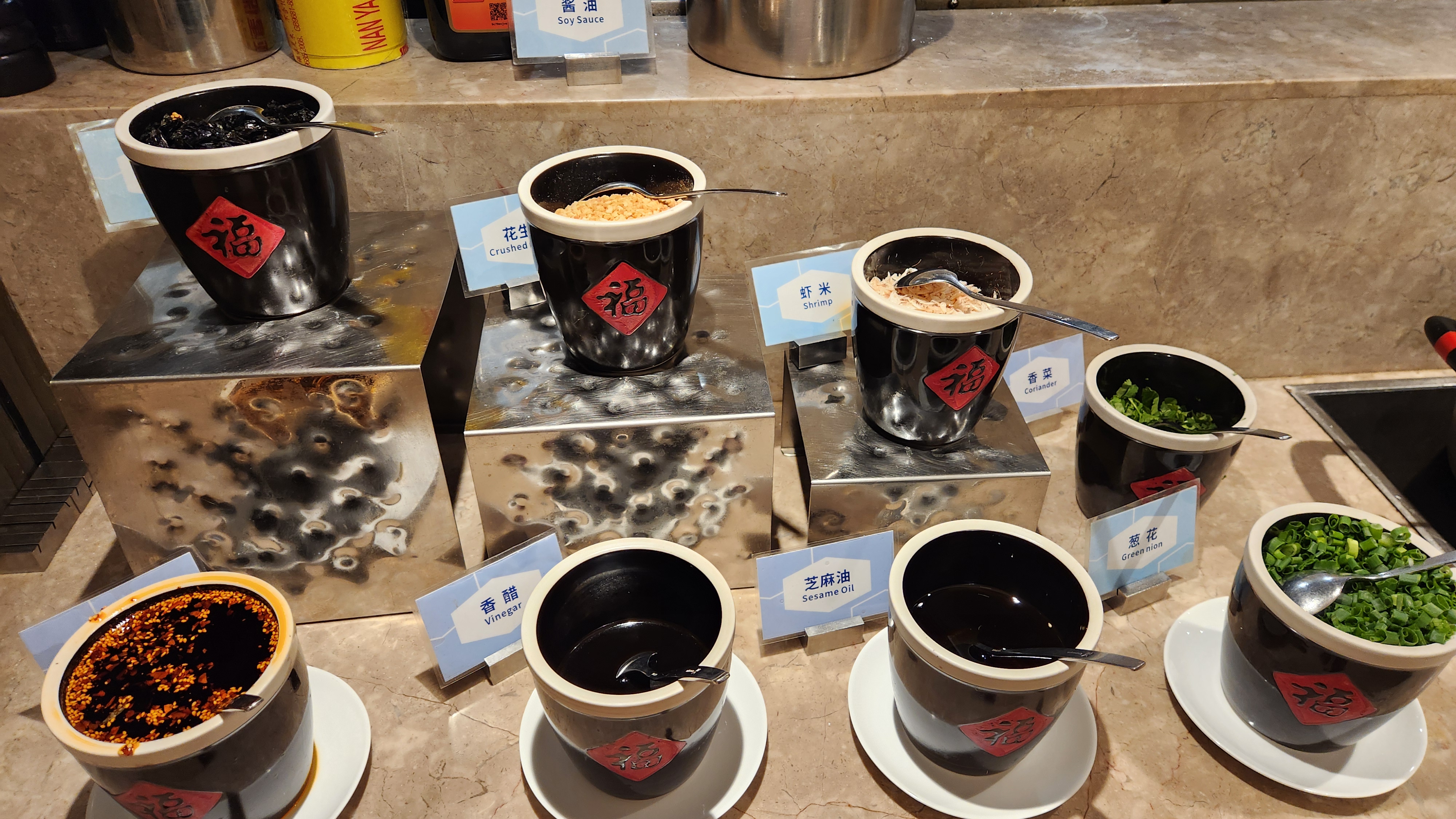 거기에 각종 소스들을 넣어서 먹는 즉석요리가 있었습니다.