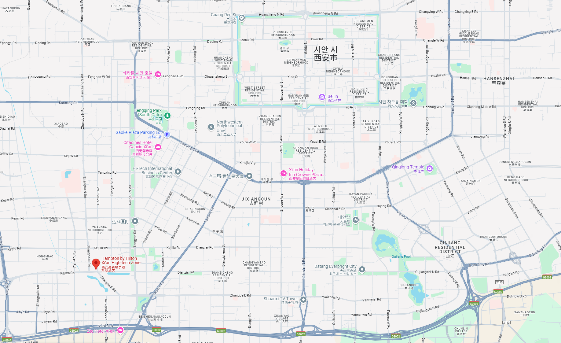힐튼 계열의 4성급 호텔으로 위치는 시안 중심 기준으로 남서쪽에 위치하고 있습니다.