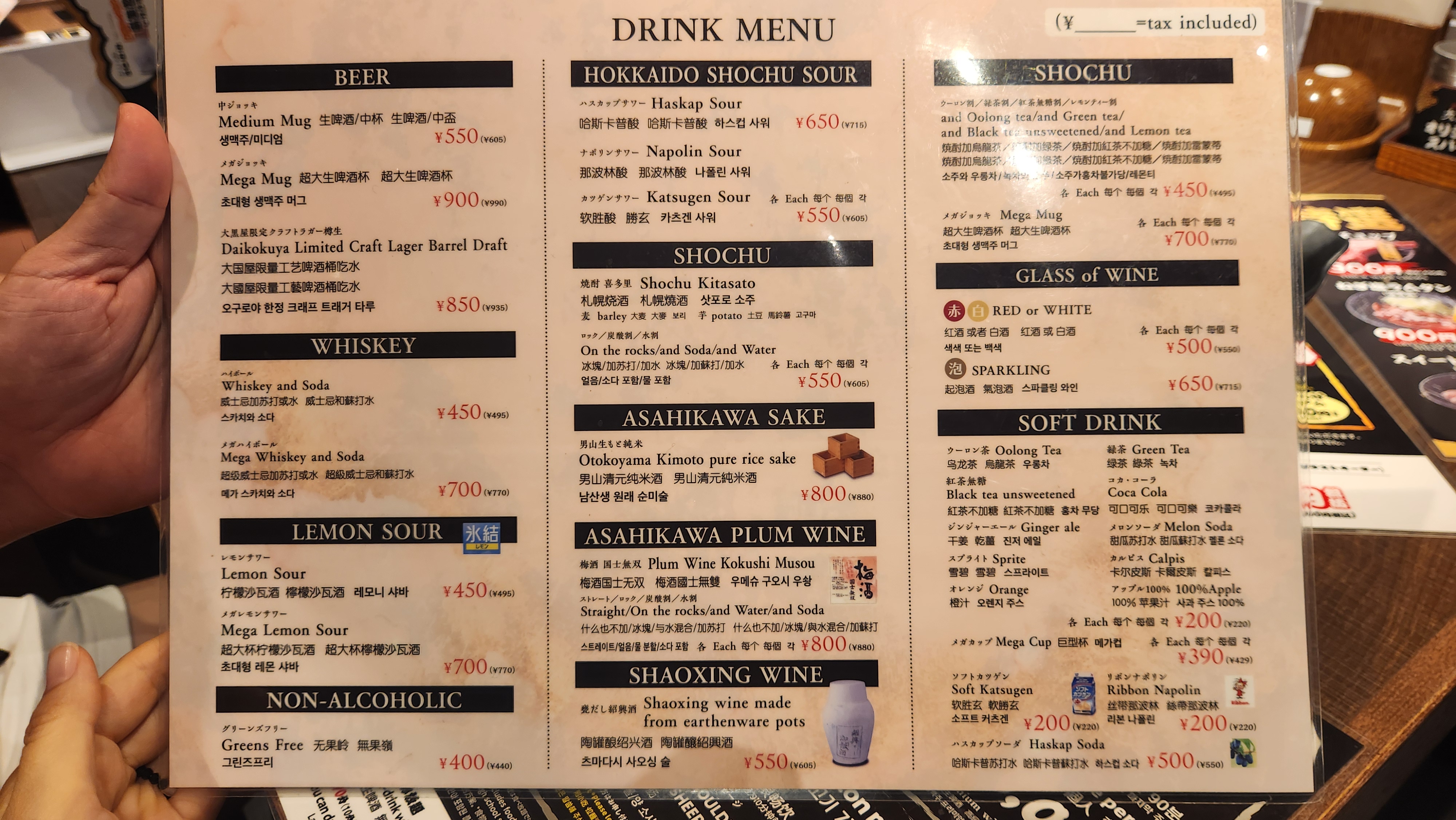 한국어 또는 영어 메뉴판은 따로 없지만 구글 번역을 통해서 주문은 가능합니다.