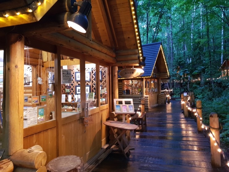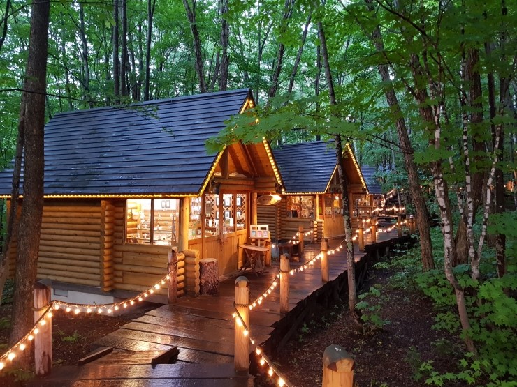 신후라노 프리스호텔 부지 내 15개의 작은 통나무 가게들이 줄지어 선 산책로