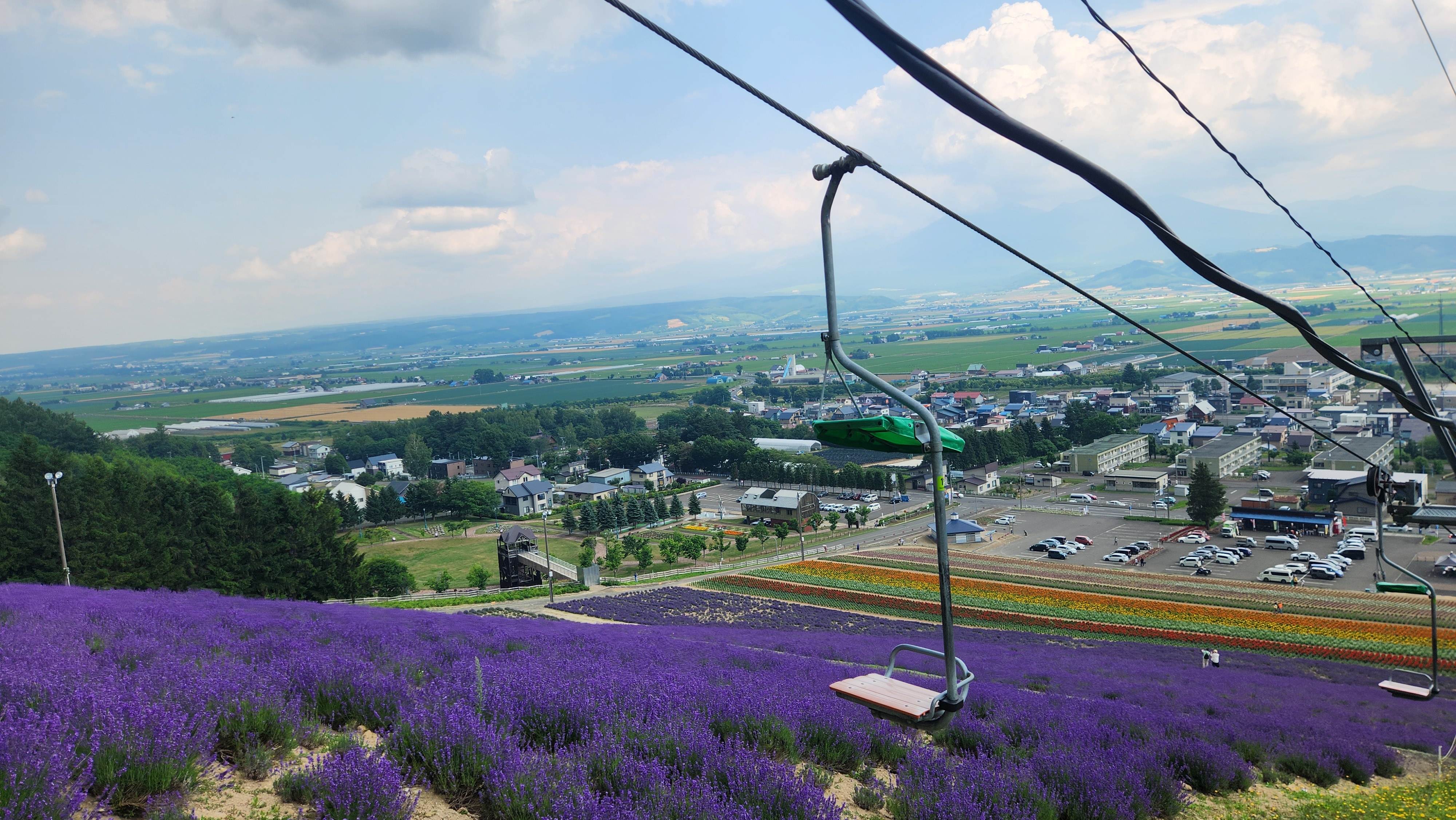 저 멀리 후라노 시내도 보이고, 라벤더 밭과 그 아래 다양한 꽃반들이 펼쳐져 있어 매우 좋았습니다.