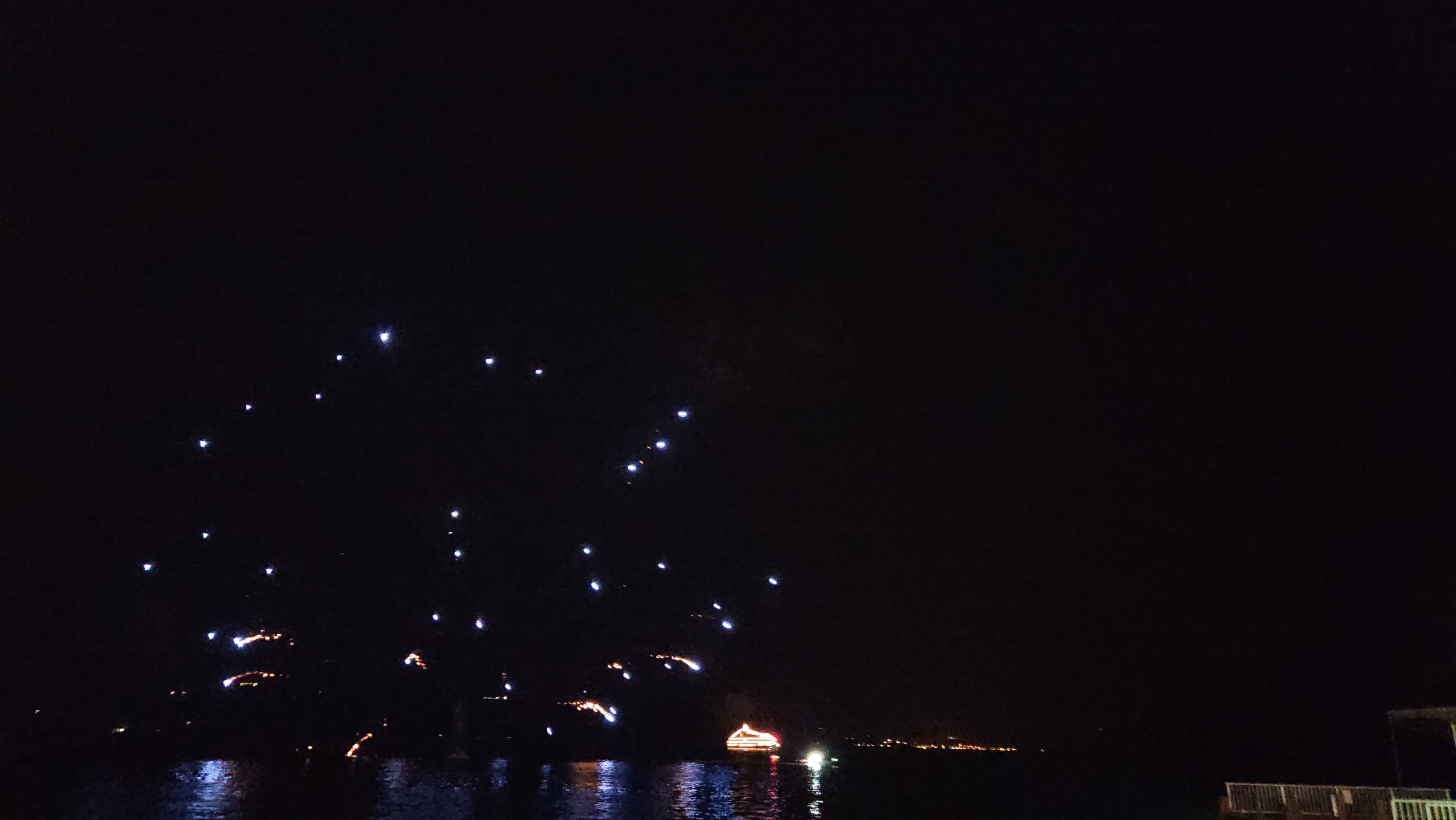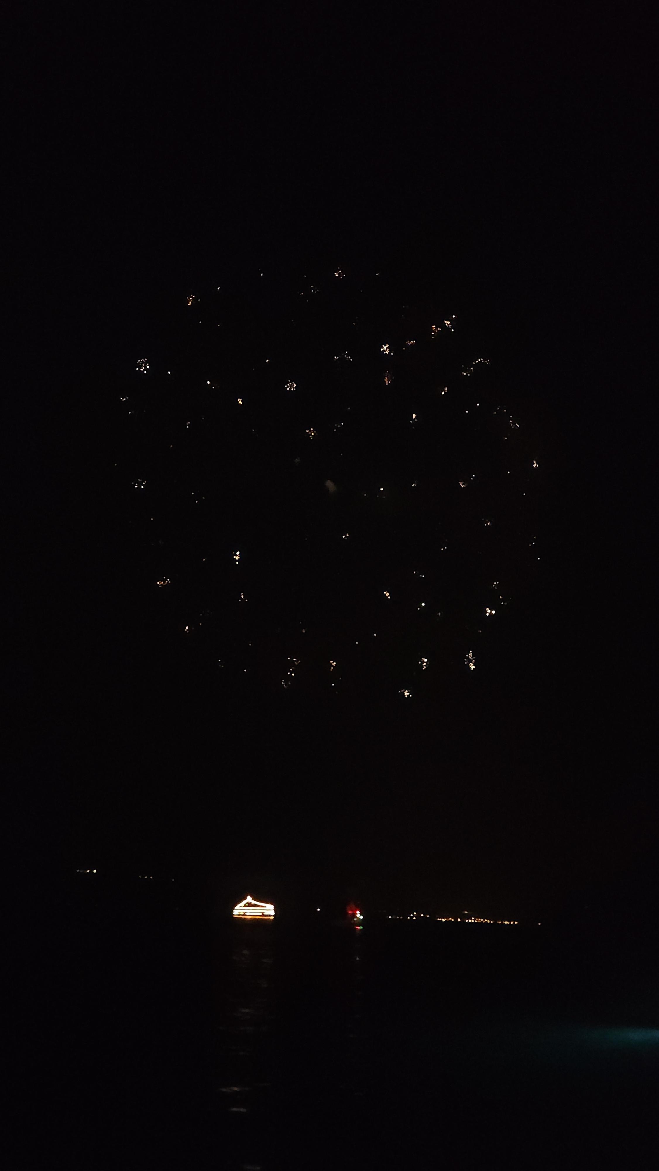 저 멀리 불꽃 아래에 유람선의 모습도 보입니다.