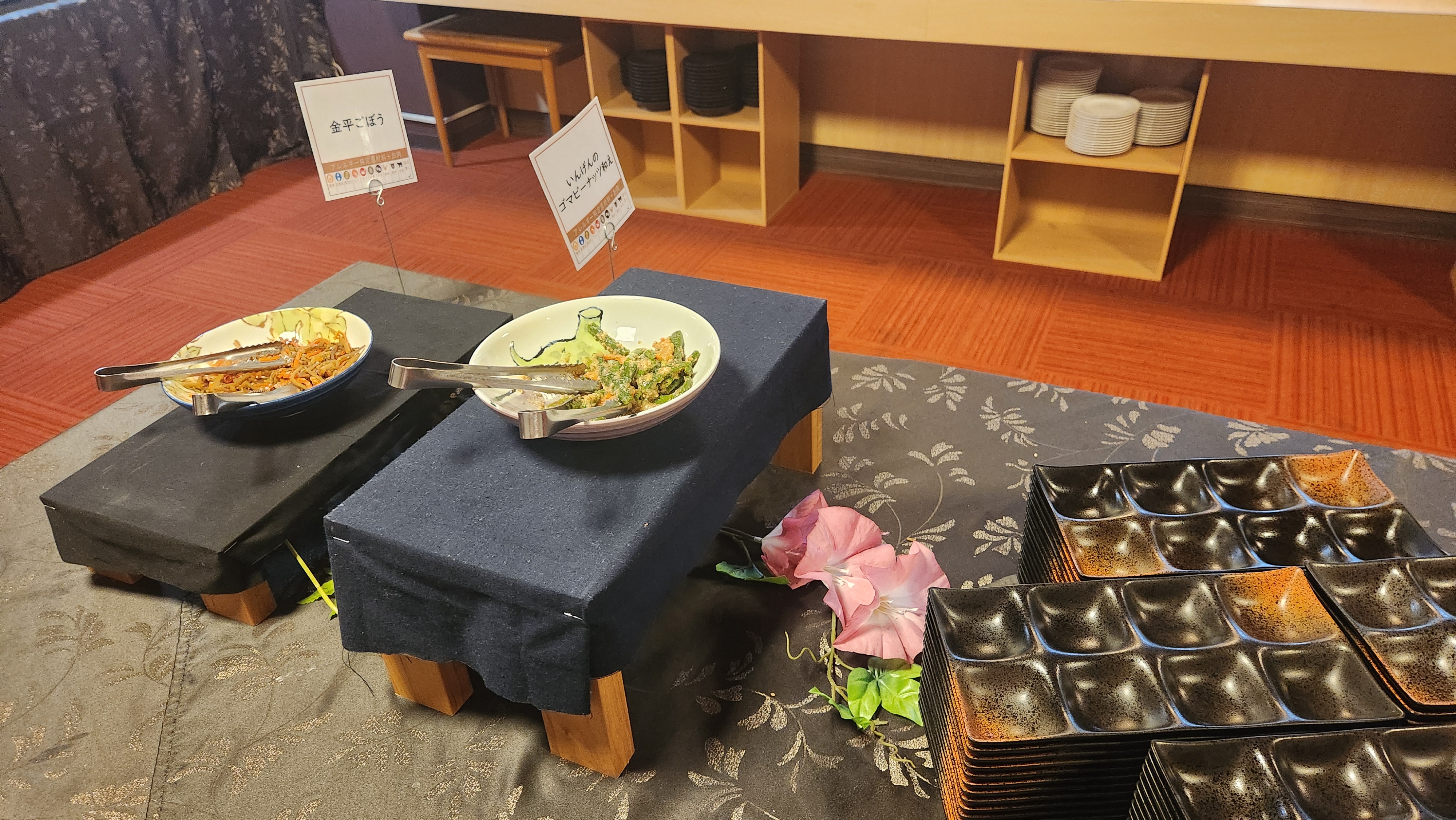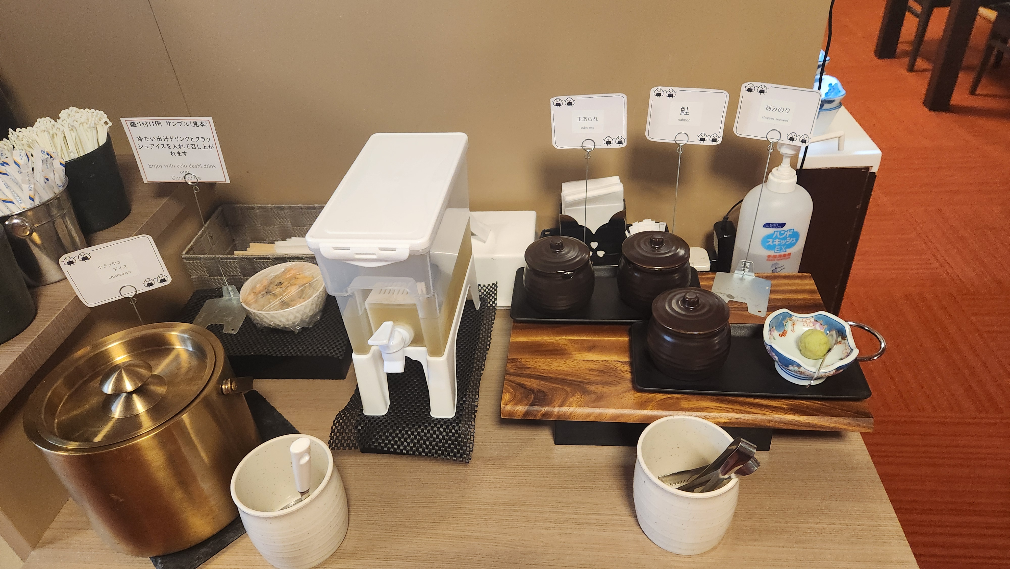조식은 아침 7시부터 9시 사이에 와서 먹으면 되고, 일본식 뷔페형태로 되어 있습니다.