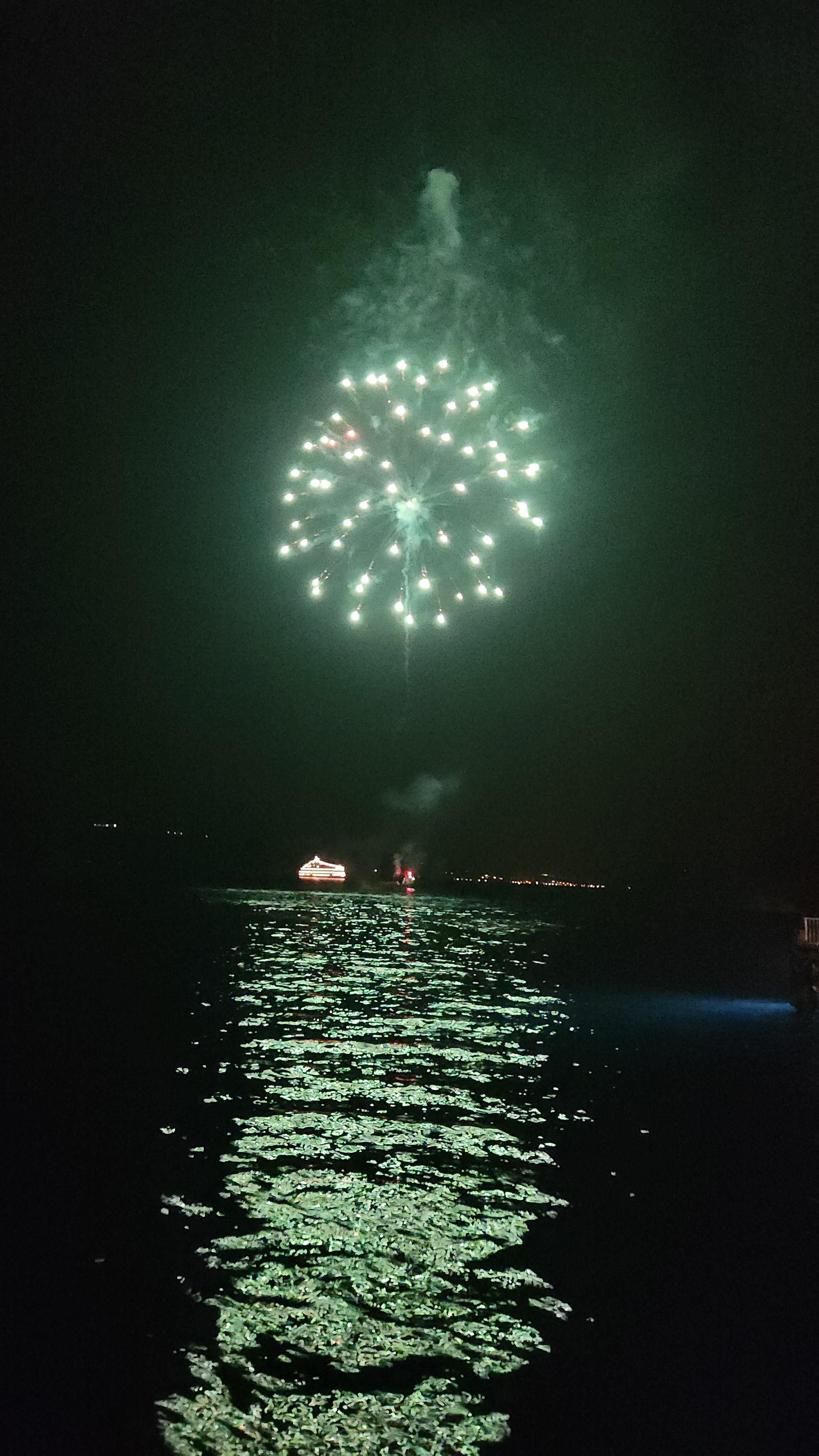호수 위에서 불꽃놀이를 감상할 수 있는 유람선이 운항됩니다.