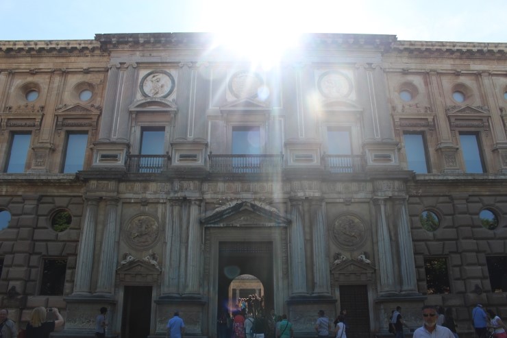 스페인 르네상스를 대표하는 건축물로, 일정한 간격으로 세워진 기둥들은 콜로네이드 양식으로 1층은 간결하고 육중한 느낌으로 남성성을 드러내는 도리아식, 2층은 부드럽고 유연한 선을 사용해 여성성을 상징하는 이오니아식으로 지어졌다, 궁전 입구에는 양쪽 하단부에 헤라클레스 부조가 있는데 이는 카를로스 5세가 헤라클레스 모험담을 좋아했기 때문이라고 한다. 이 외에도 중앙 전면부 파사드 상단에는 소를 때려잡는 헤라클레스와 사자 가죽을 뒤집어쓴 헤라클레스 부조가 있다. 이는 헤라클레스가 자신의 죄를 씻기 위해 수행했던 12가지의 과제를 형상화한 것이다. 1층에는 박물관이 있으며 입장료는 무료이다. 예수의 생에 얽힌 부조아 성화, 제단화 등이 전시 돼 있다.